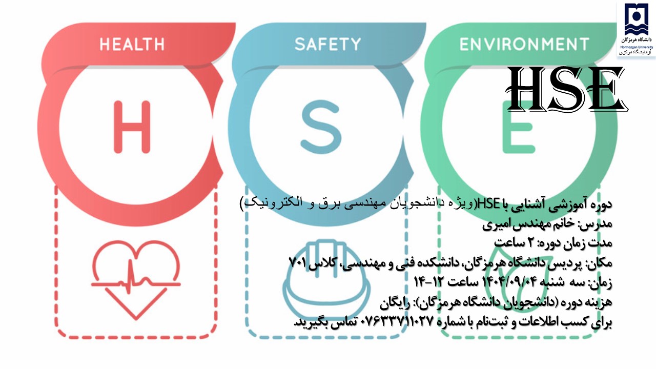 ثبت نام در دوره ایمنی(HSE) در آزمایشگاه (ویژه دانشجویان گروه مهندسی برق و الکترونیک)